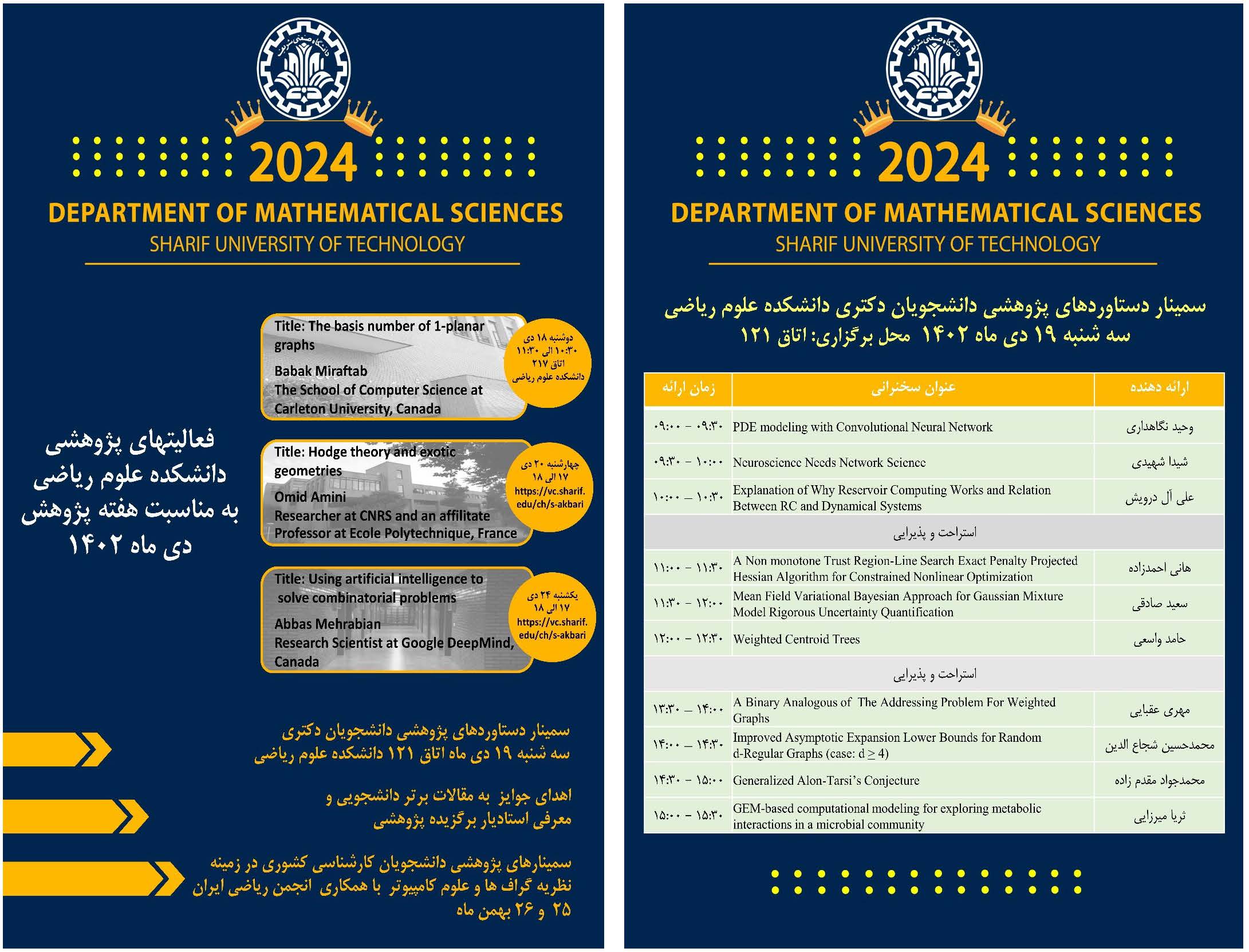 فعالیتهای پژوهشی دانشکده علوم ریاضی به مناسبت هفته پژوهش دی ماه 1402