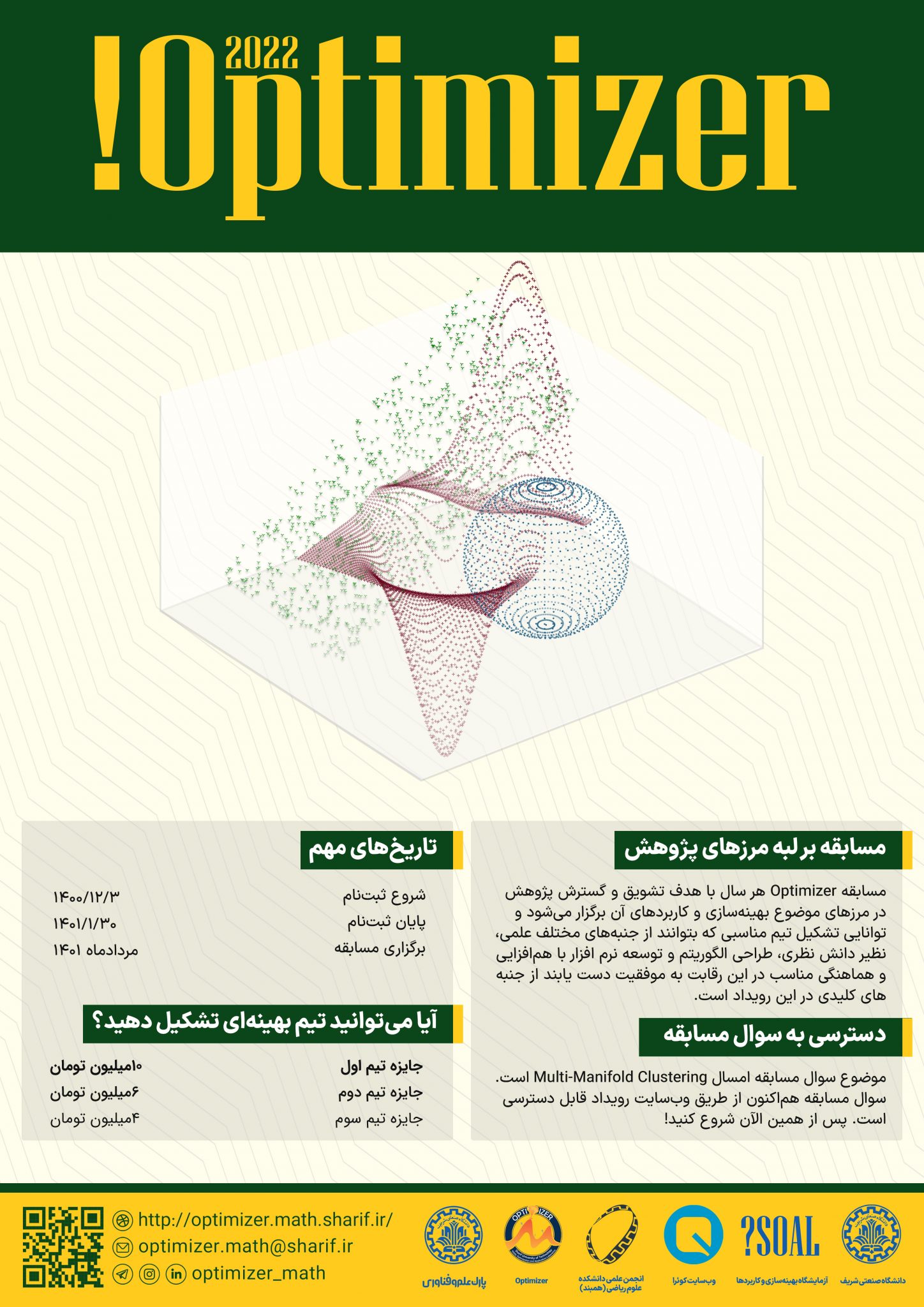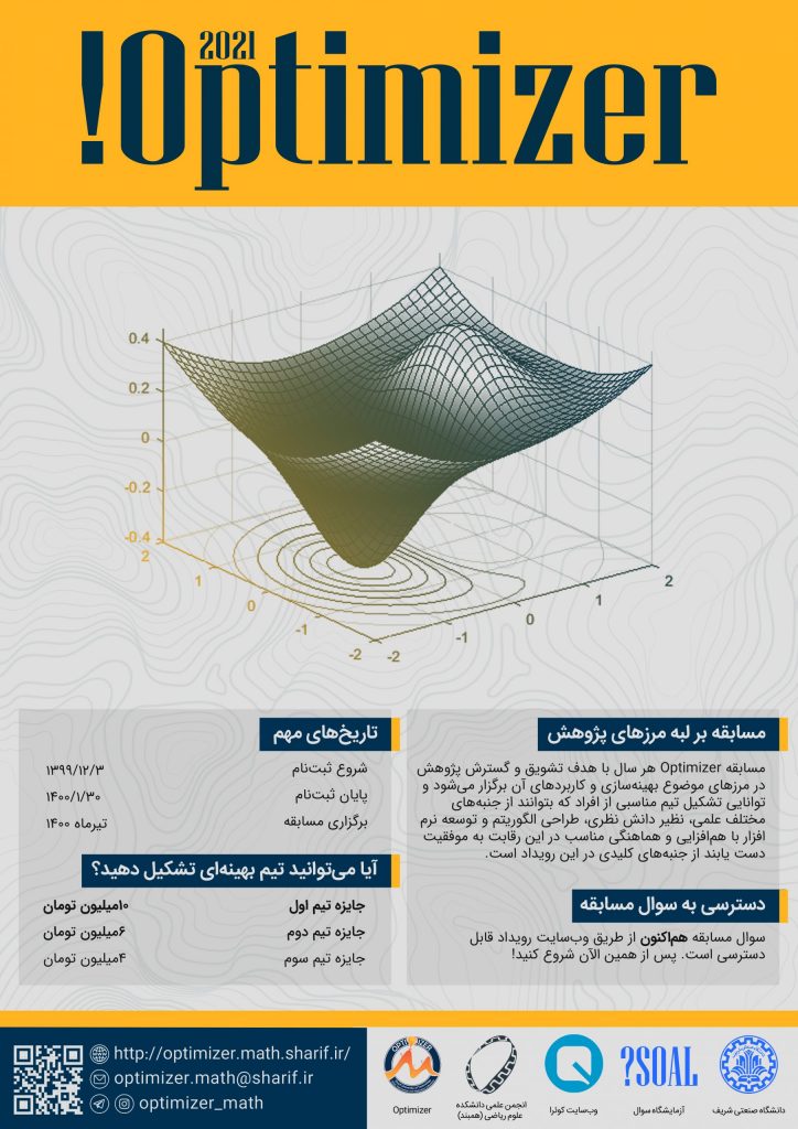 فراخوان ثبت نام مسابقه Optimizer 2022 مرداد 1401 فراخوان ثبت نام مسابقه Optimizer 2022 که در دانشکده علوم ریاضی دانشگاه صنعتی شریف برگزار می گردد منتشر شد. برای آگاهی از مهلت ثبت نام و توضیحات...